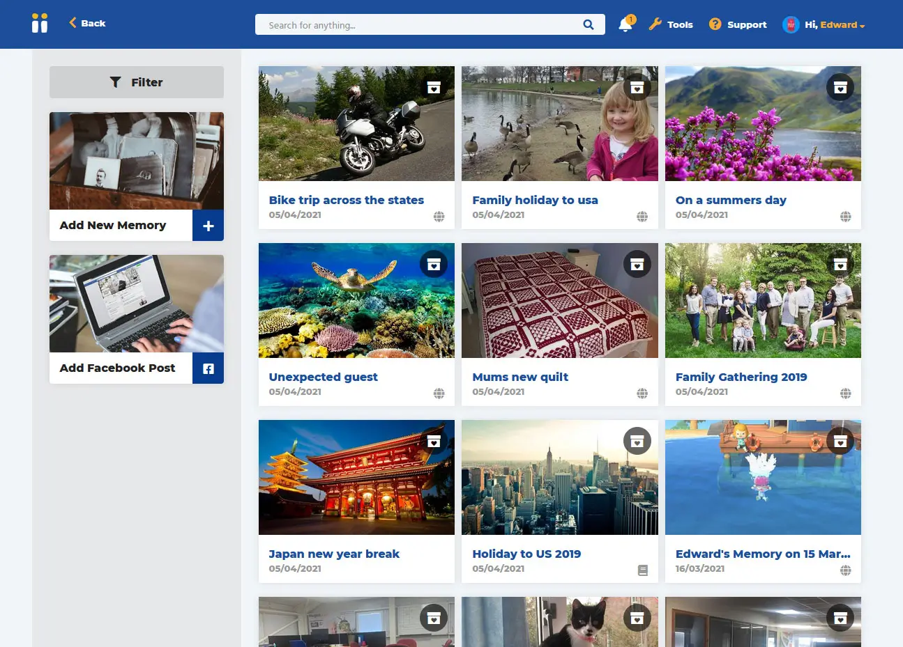 Build your online legacy using a wide range of customised tools, tailored to leave the story of your family for future generations to look back on and enjoy.